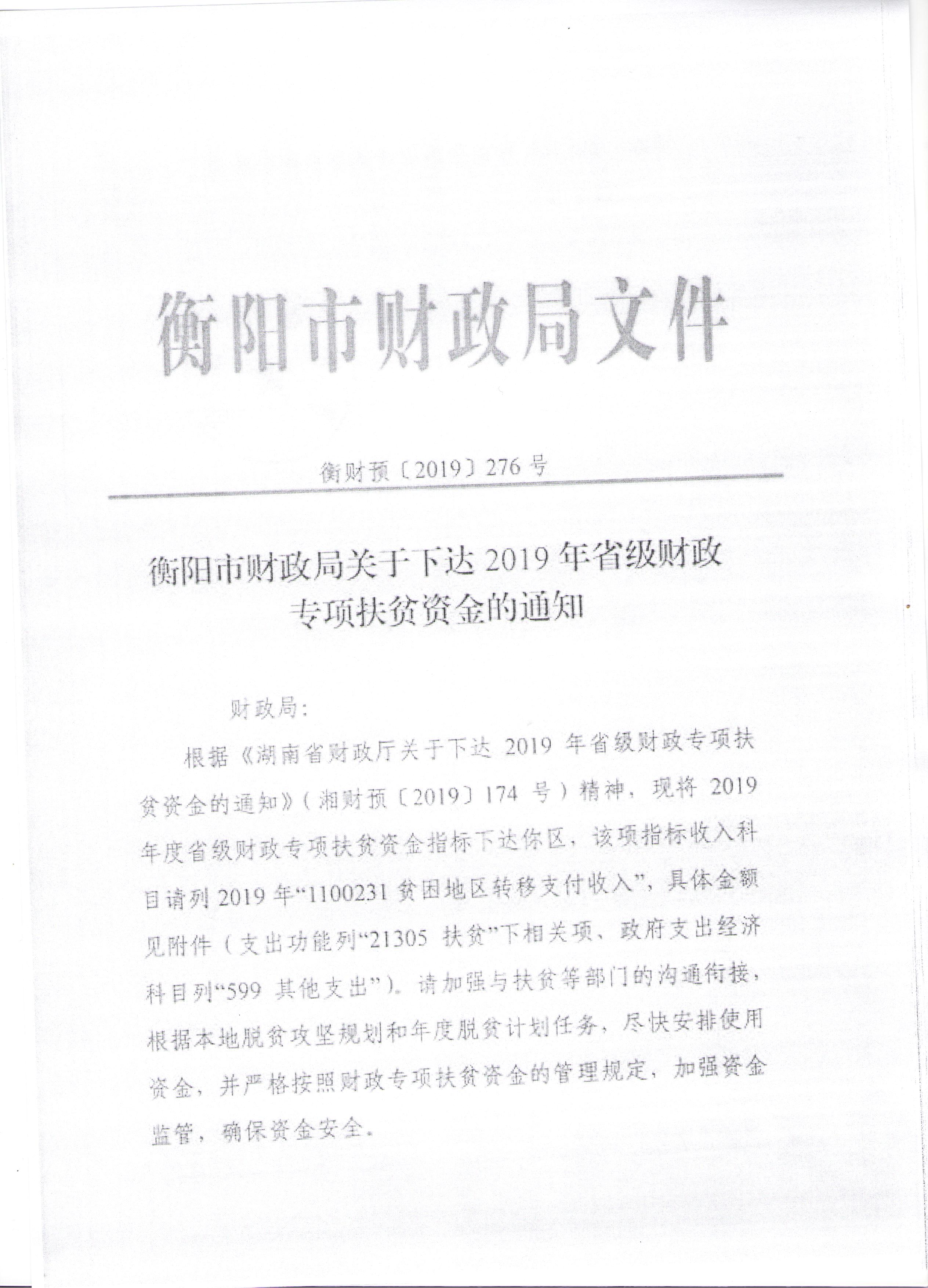 【区财政局】收到省级财政专项扶贫资金的公示