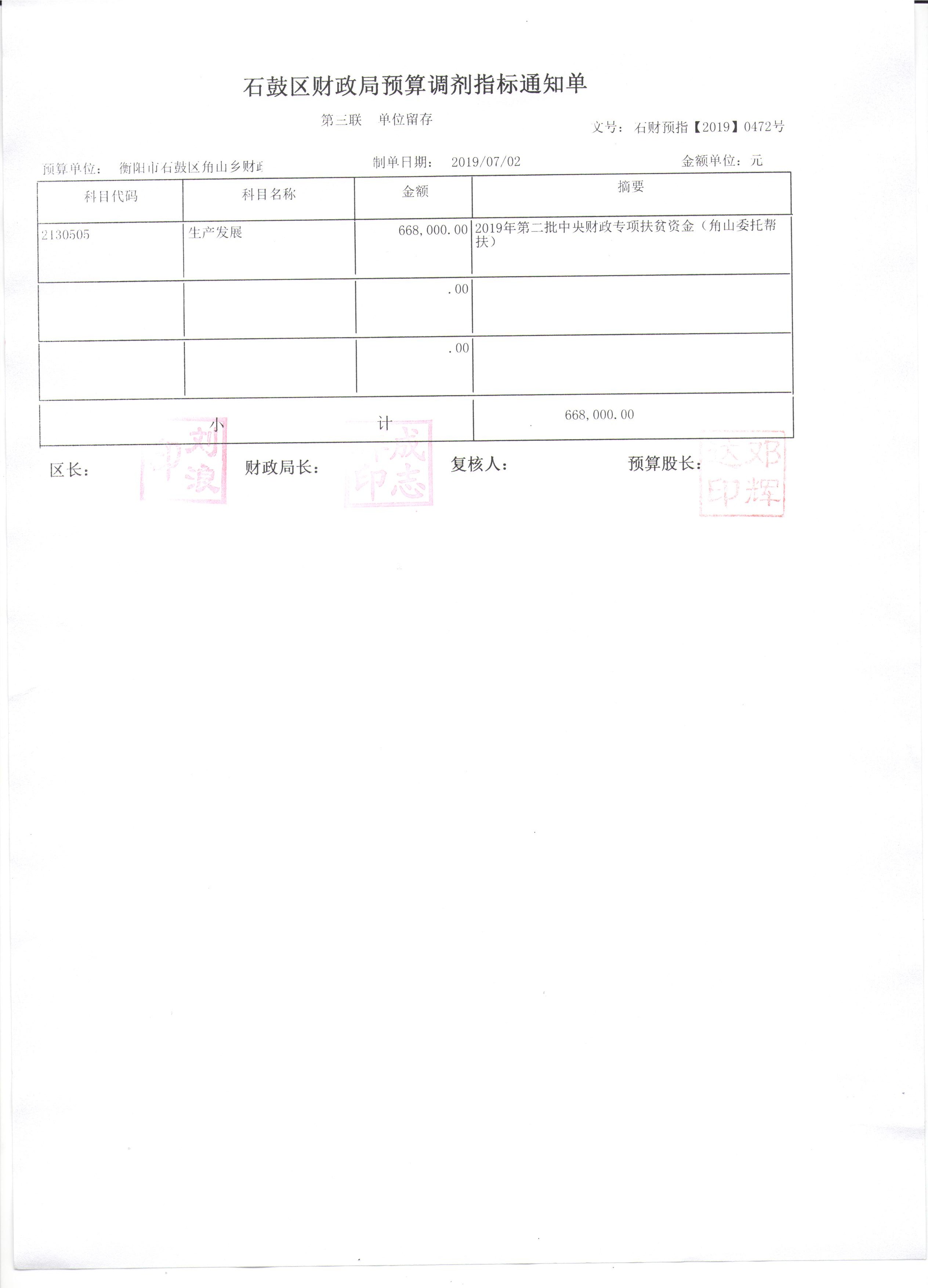 根据衡财预【2019】198号文件精神,报经区领导核准,特下达各镇(街道的)中央第二批财政专项扶贫资金,主要用于各镇(街道)建档立卡贫困户委托帮护。预算指标下达如下: