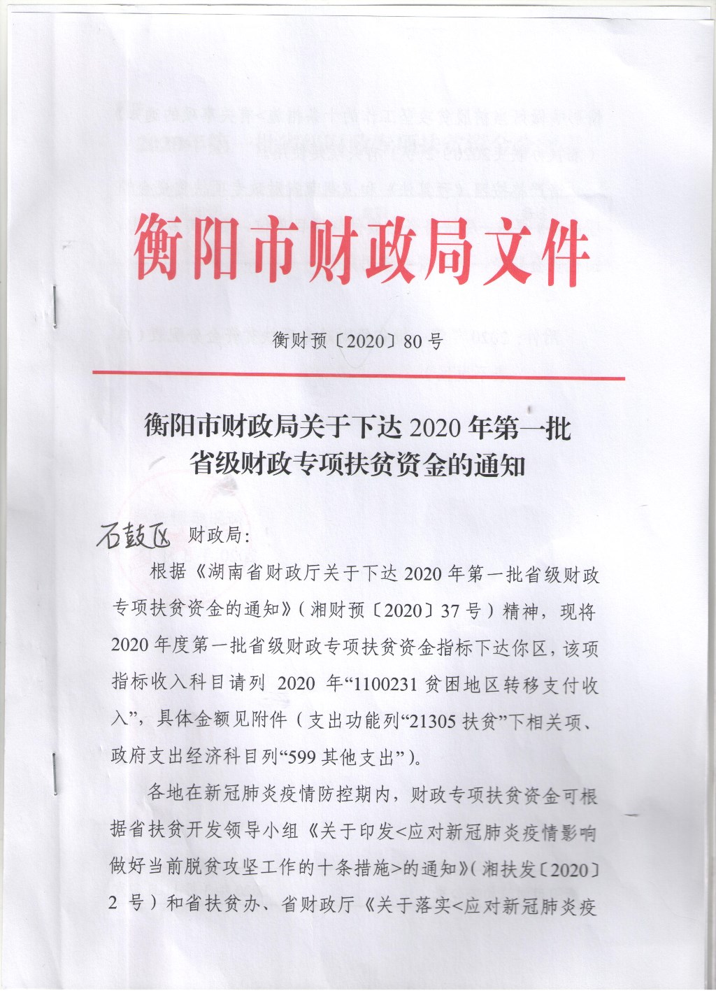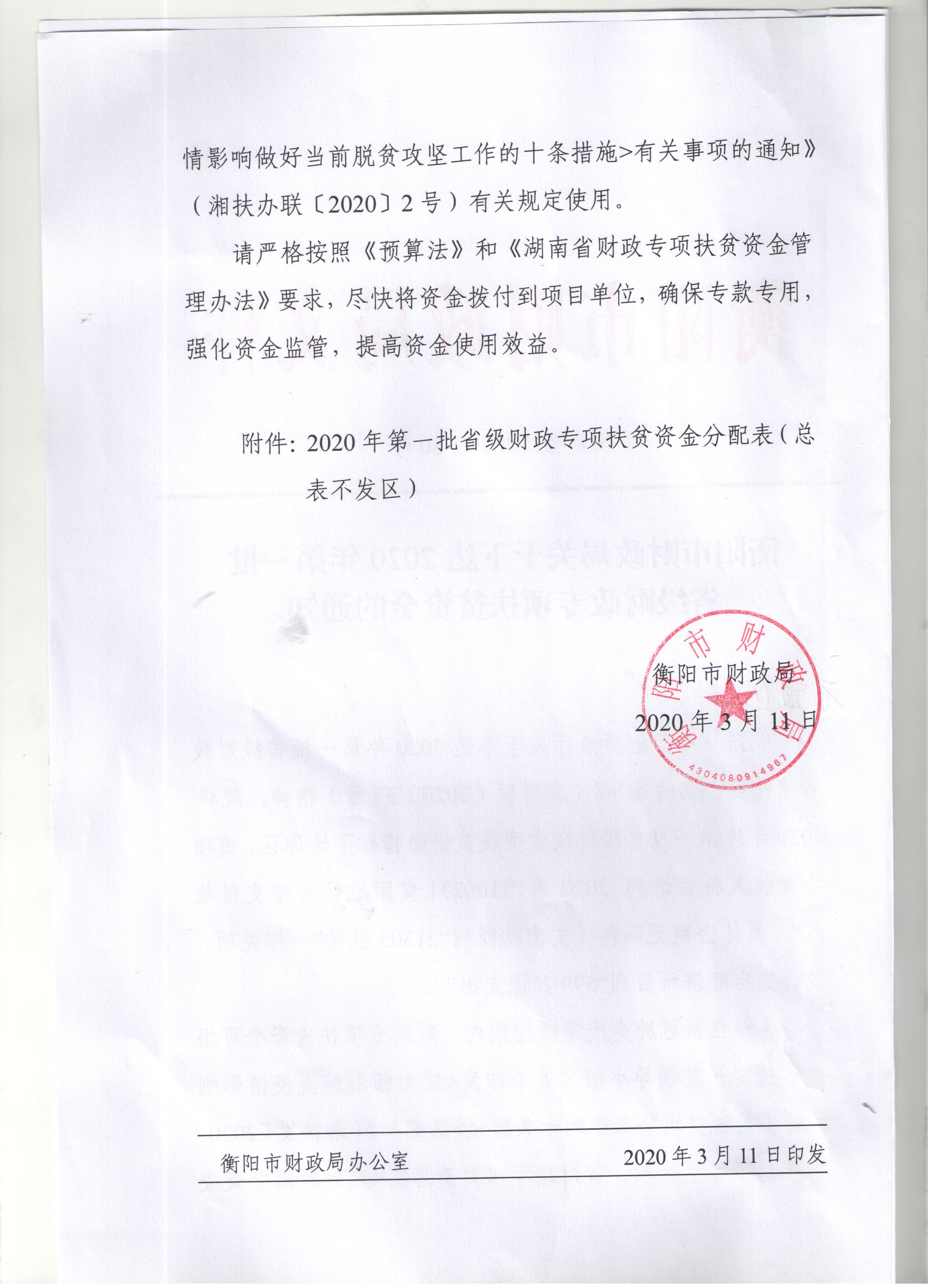 关于下达2020年第一批省级财政专项扶贫资金的通知