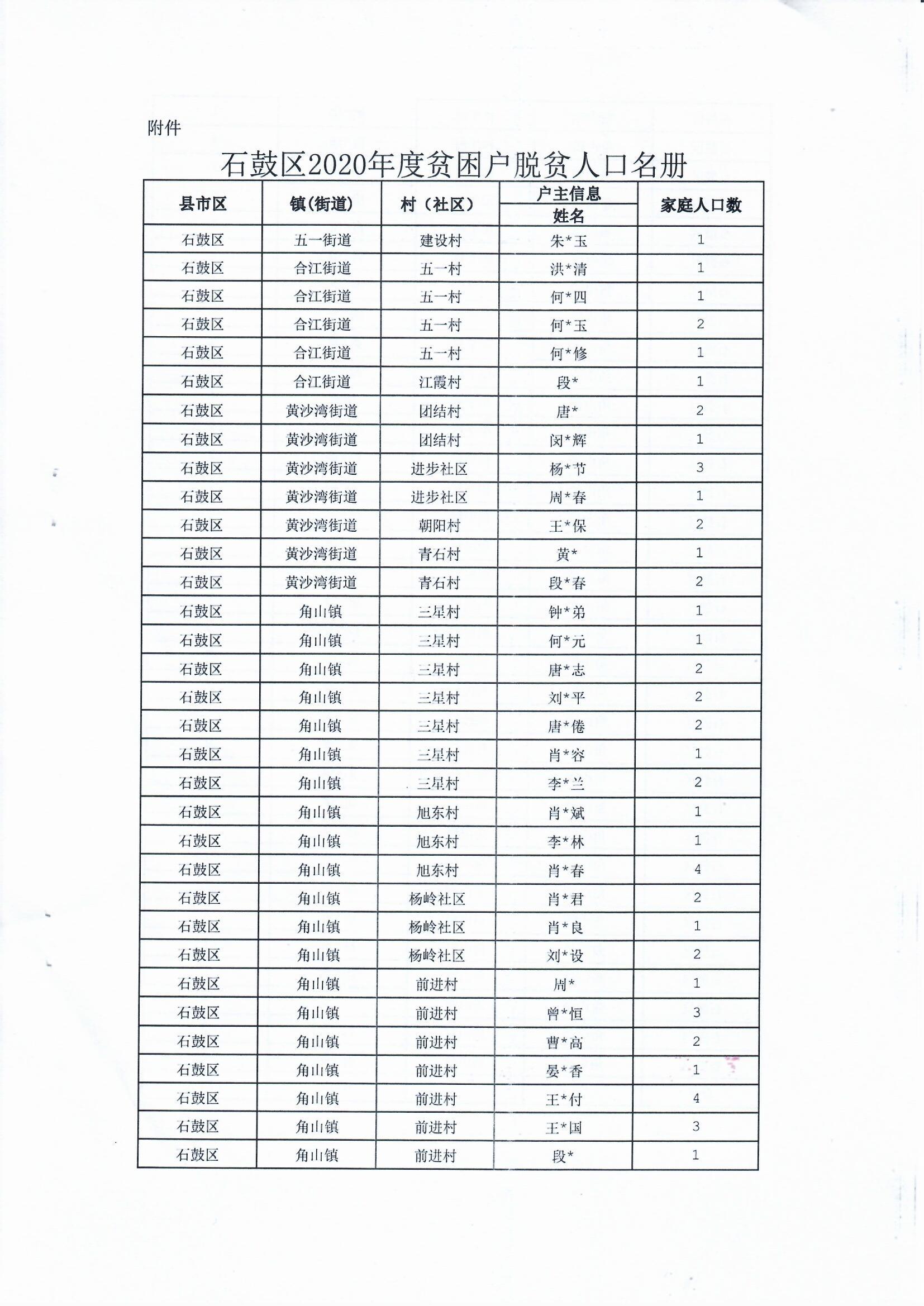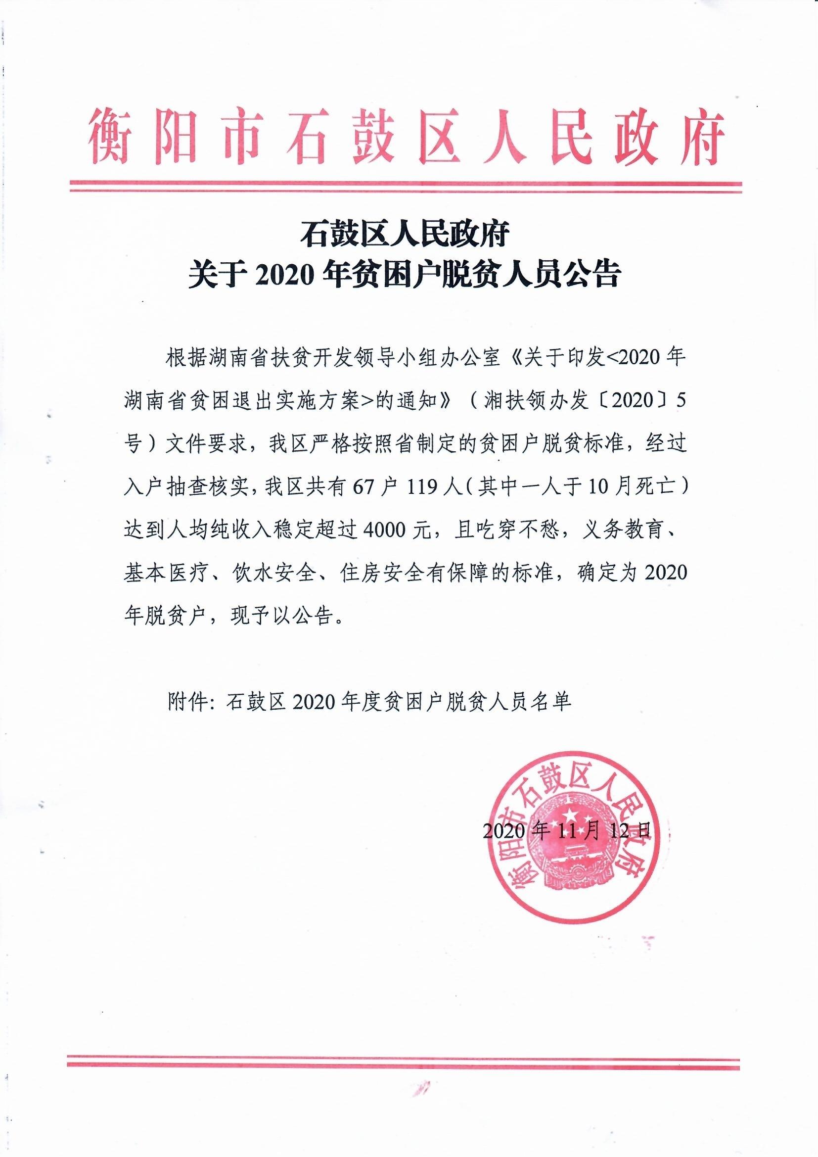 【区扶贫办】石鼓区人民政府关于石鼓区2020年贫困户脱贫人员公告